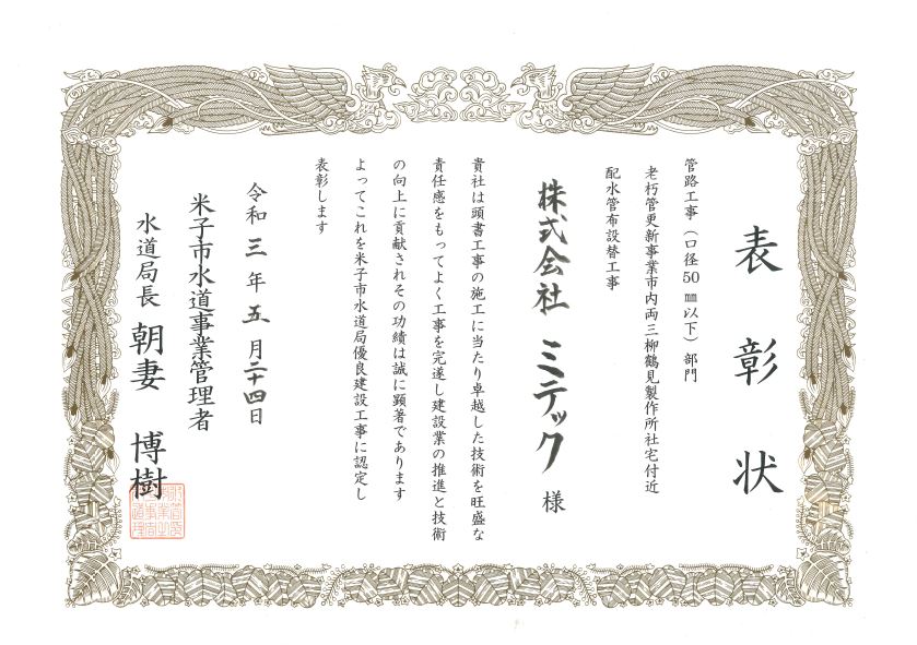 老朽管更新事業市内両三柳鶴見製作所社宅付近配水管布設替工事 |